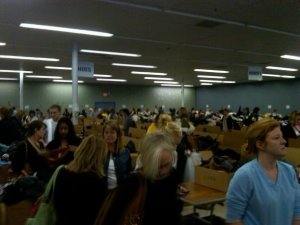 So when this security guard screamed “EVERYONE OUT!” – overzealously, I might add, since the danger level was roughly equivalent to the danger of Osama bin Laden coming back to life as a zombie from I Am Legend and armed with Scud missiles and a chain gun – what ensued was a screechy stampede for the exits.