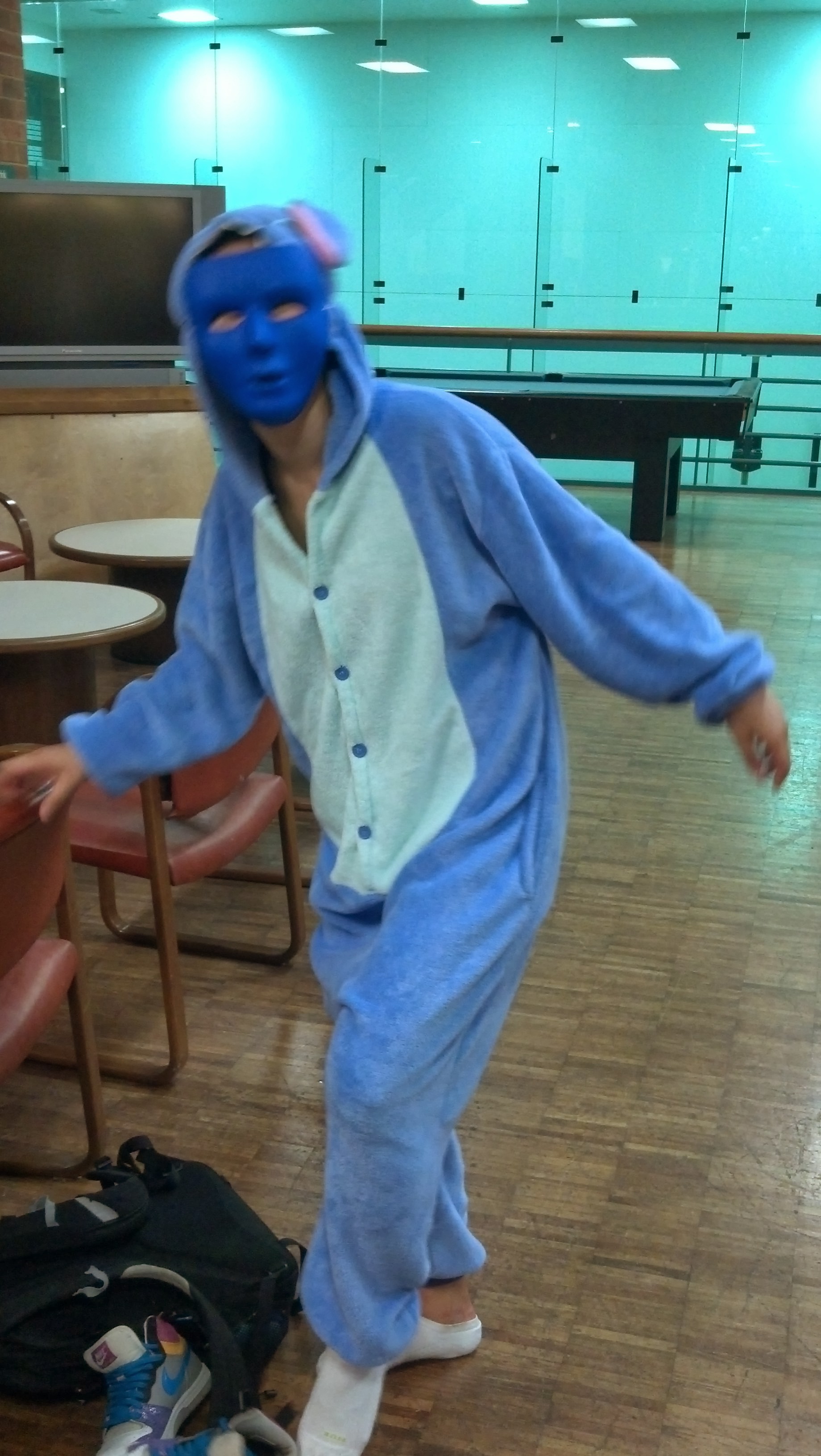 For instance, here is one of our College mentors – a senior faculty member here who normally leads our weekly ethics discussions with extreme seriousness – dressed like a serial killer/member of the Blue Man Group: