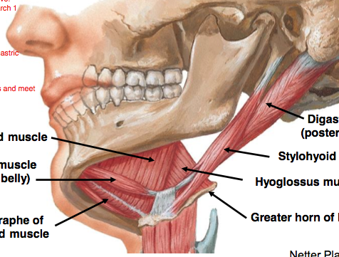 Compounding the problem is that the neck has arteries, veins, and worst of all nerves. God I hate nerves. Of course, they all have names, and of course, they will all be tested. You have to know that the geniohyoid muscle is innervated by the C1 spinal nerve, but that it uses the dreaded hypoglossus nerve as a piggyback to get there. I have no idea whatsoever why this is important.