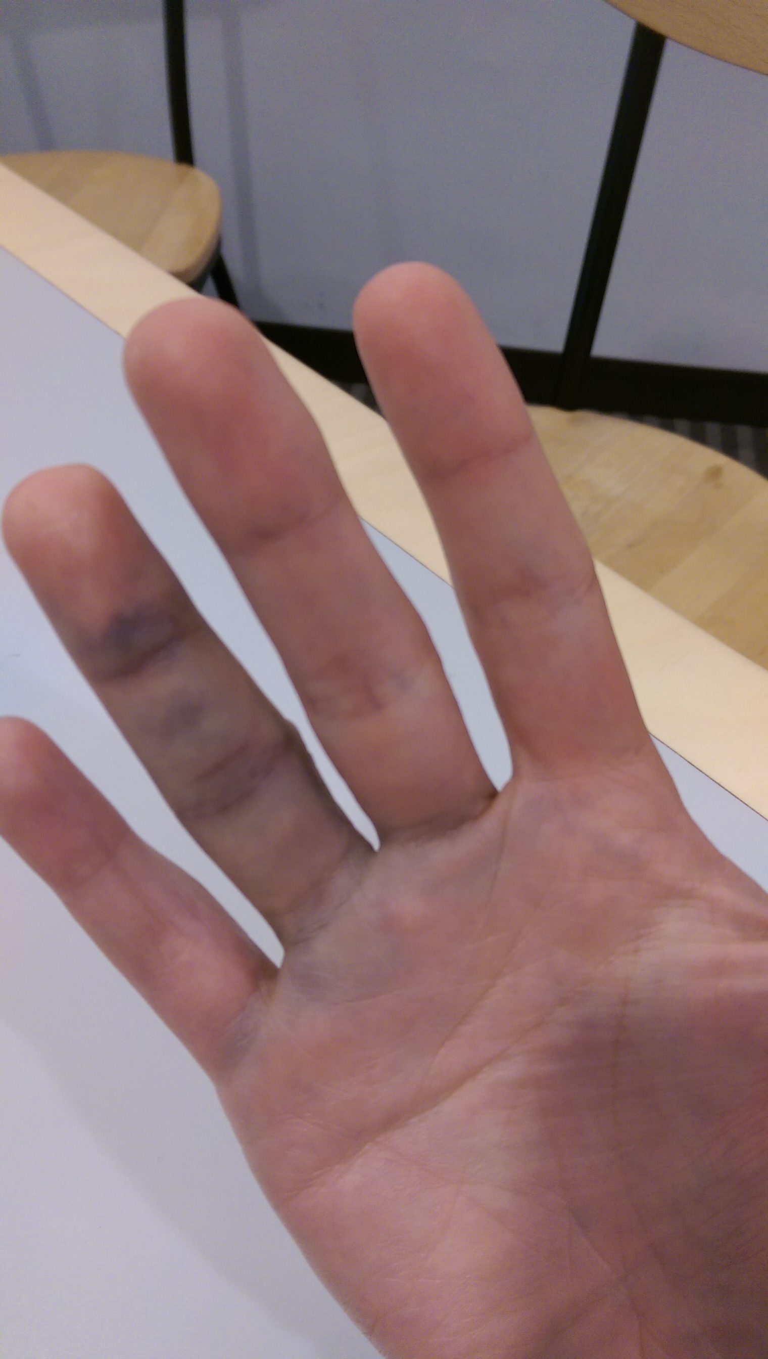 It turns out that this is an excessively painful and challenging step to execute with a “transverse fracture of the middle phalanx of the ring finger.”
