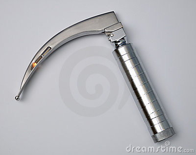 Once you’ve got the mouth open, you insert the laryngoscope. A laryngoscope is the L-shaped tool we use to be able to see the vocal cords, which are in medical terms, “way the hell down in your throat.” Saying that we insert the scope is a little misleading, because what actually happens is you jam this thing next to the tongue, cram it down the throat, and then use your entire upper body strength to push the lower jaw away from you. This ostensibly brings the vocal cords into view.