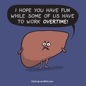 In medical school I knew what probably eleven of those words meant. Now I can decipher three of them. I also remember from fourth year of medical school that partying too hard can damage your liver: