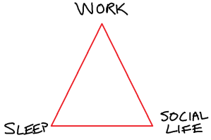 This arm of the Triad is awesome! You lead a normal life: you sleep 5+ hours a night. You have time to hang out with friends and go to happy hour and get drunk and go to the beach. You can call your grandmother on the phone. You can water your plants and go on unsatisfying app-based dates.